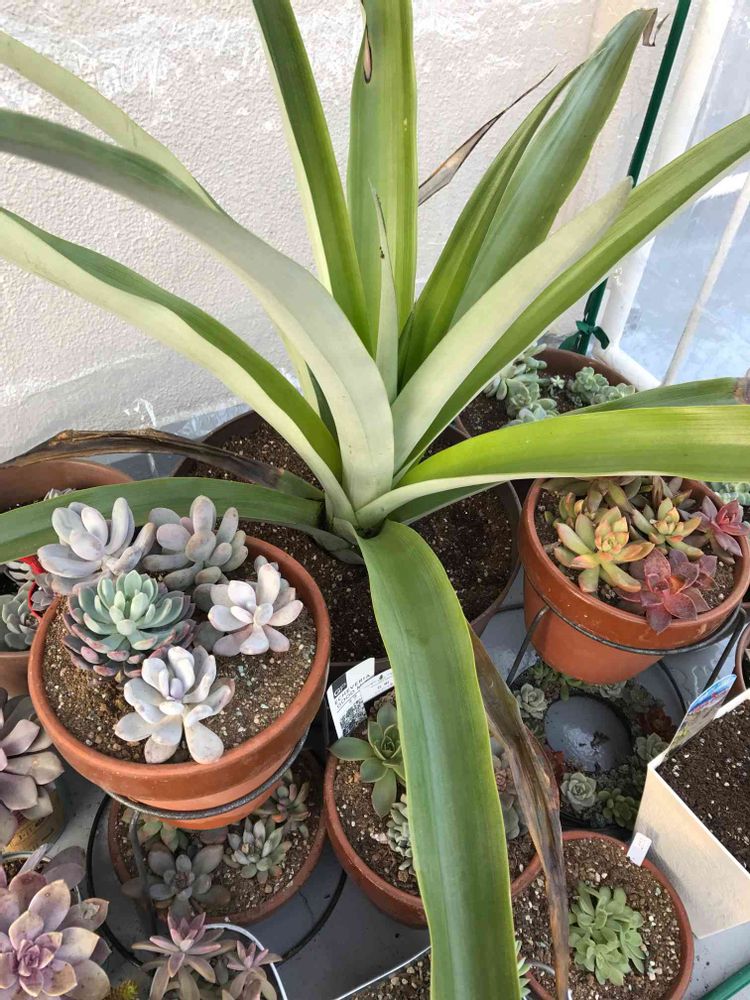 去年スーパーで買ったパイナップルの頭がとんでもなくでかくなりすぎて、もう部屋に入れられないから、今年はここで冬越ししてね♡頑張れ‼︎