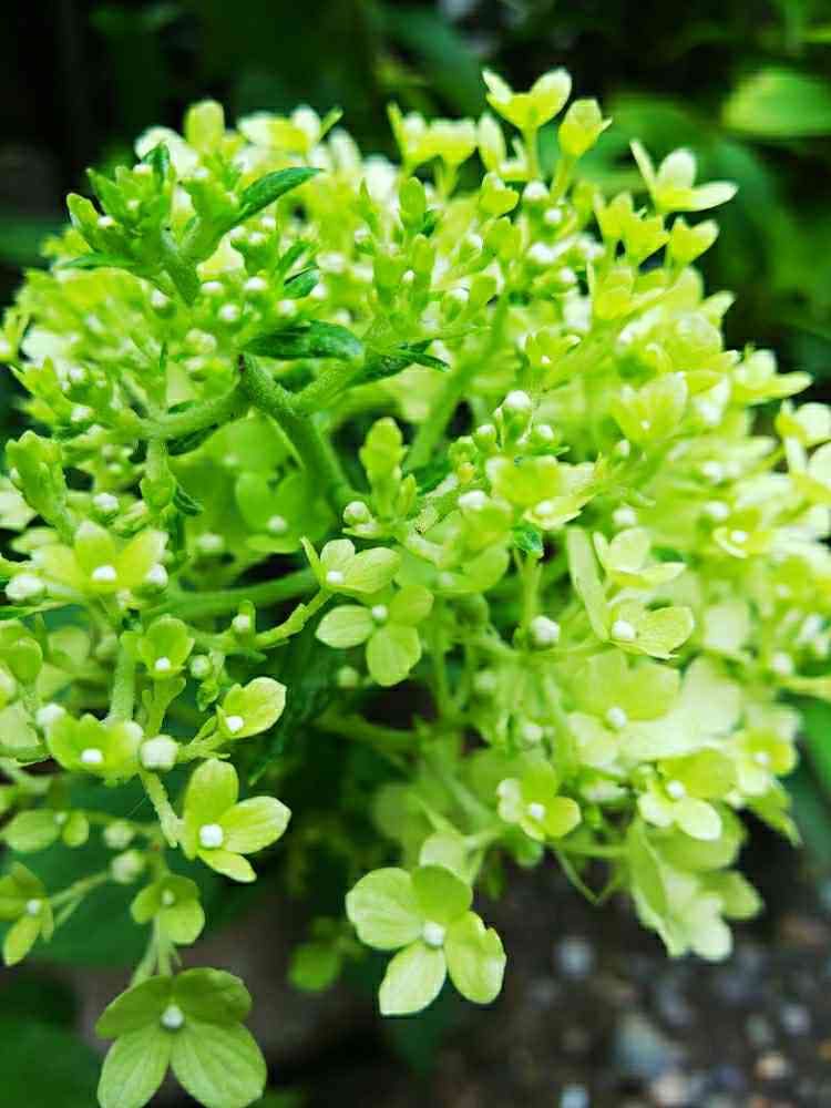爽やかな色をし小さいな花で綺麗なピラミッドアジサイです😊