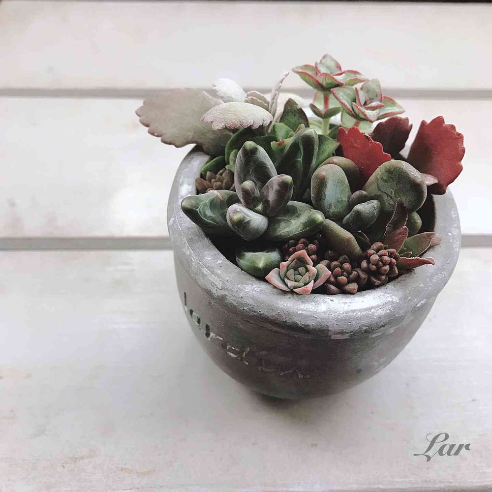 教えていただいてミョウバンで中和させたセメント鉢に植えた自家製カット苗♡根付いた(*≧∀≦*)