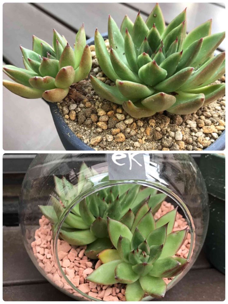 多肉の植え具合は、茎は隠れますが、葉の裏側は、用土に触るか触らないくらいが良いです。