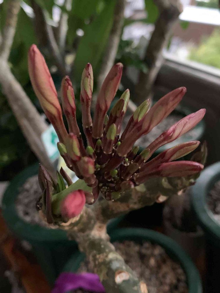 カルフォルニアサンセット。今年、花芽が上がってたから渋々挿し木した子。発根してないから花芽落ちるだろうと思っていたけど…育ってる❣️