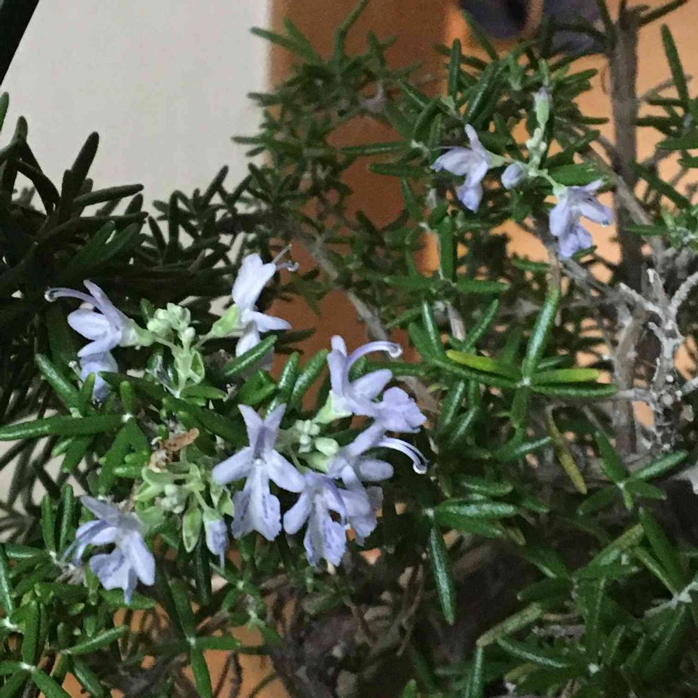 外はマイナス気温の雪。室内はローズマリーが次から次へと開花。