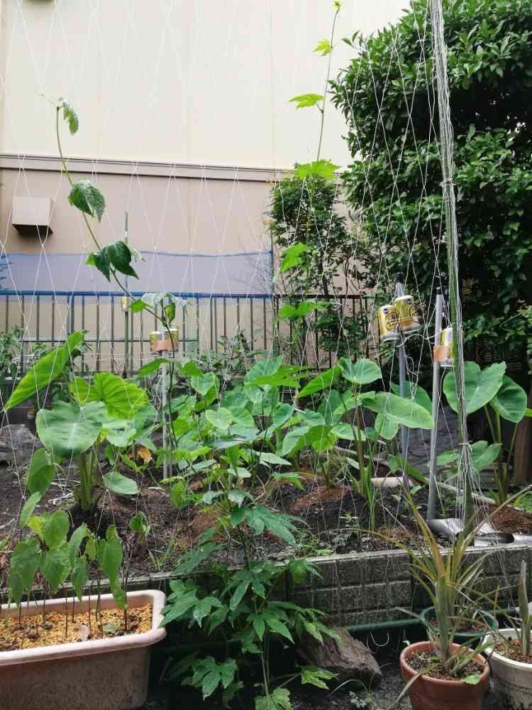 ネットに移植して33日目の スズメウリ つるが1メートル50センチ になりました そろそろ 小っちゃな小っちゃな 白い花がつく予定😊