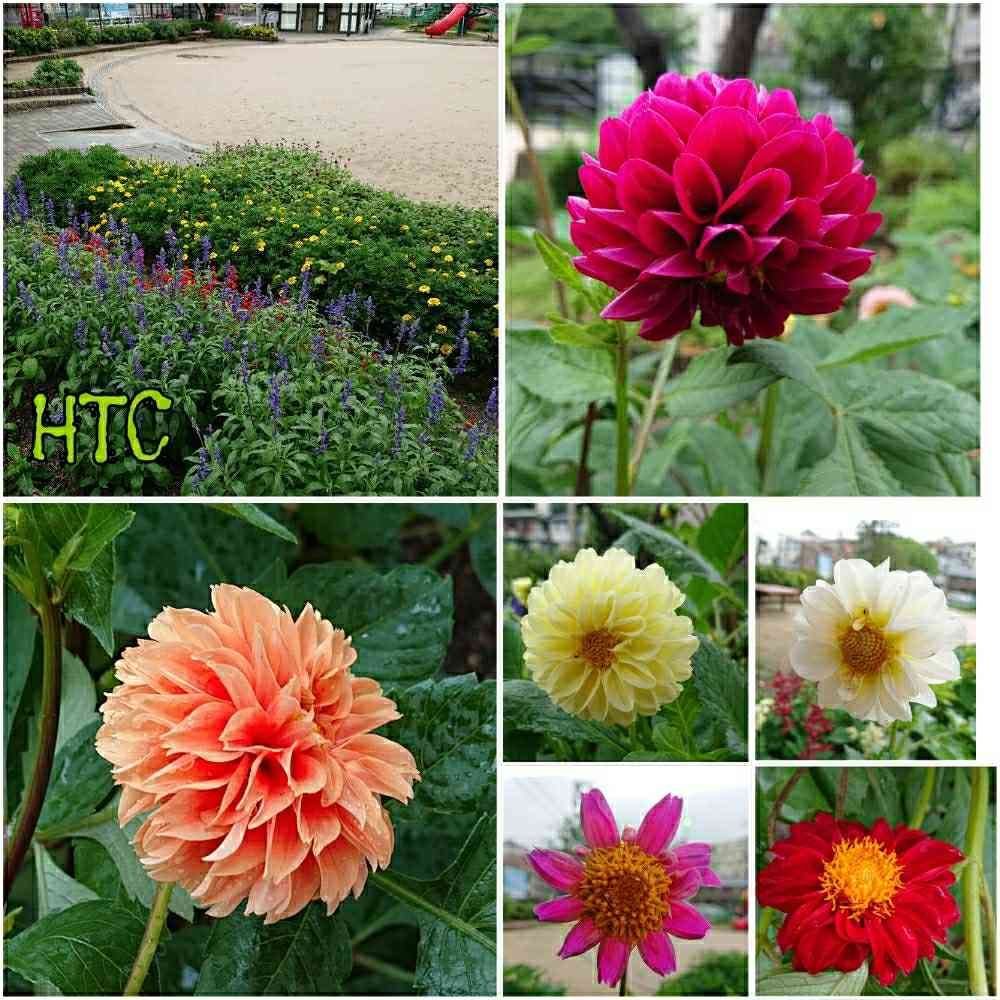 今朝のお散歩途中、地域の公園にダリアが咲いていました。