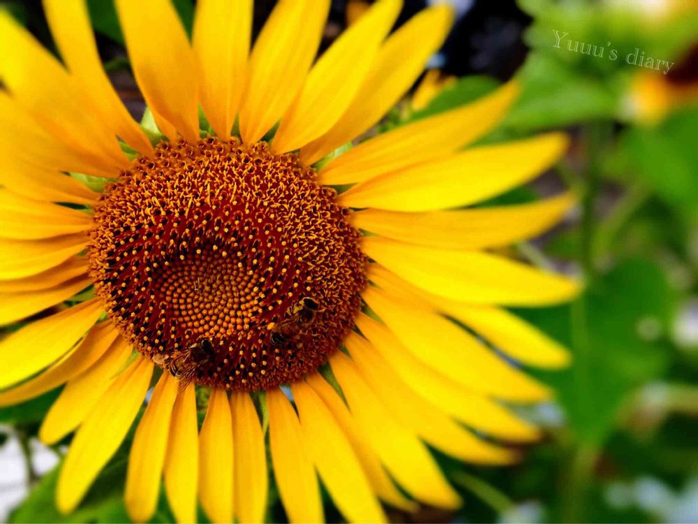 駐車場に立派に咲いていたひまわり🌻ちょうど今日のお花ですね!ミツバチさん達も遊びに来て楽しそう🐝カメレオンのように同化してるけど…笑