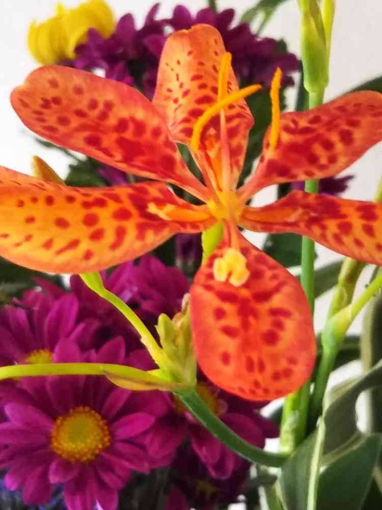 このこはね、職場の今月の誕生会の活花の中にいたんです🎵