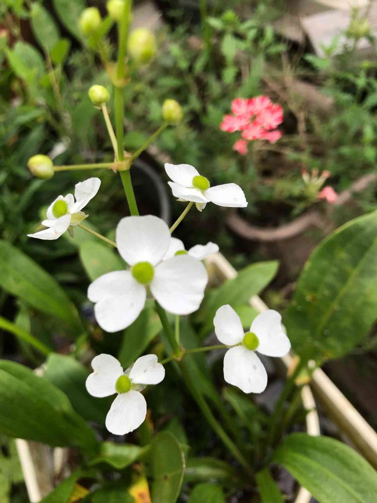 オモダカの葉が好きで育ててみましたが、全然花が咲かず、このナガバオモダカを育ててみたら、よく咲きます。