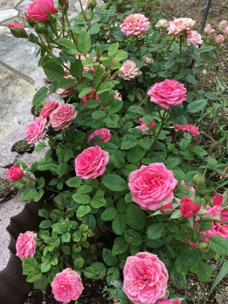 去年、見切り品で買ったミニバラ3鉢を地植えにしたらすごくたくさん花が咲きました🌹
