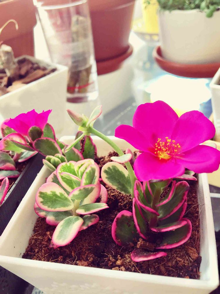 挿し芽していたポーチュラカマジカルキューティーが花咲いて🌸たぁ〜✨