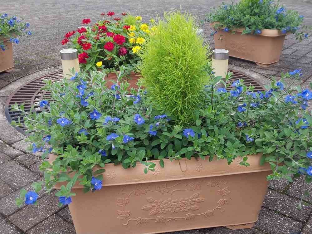 お出かけ先,町民会館前広場,コキアとアメリカンブルーの寄せ植えの投稿画像