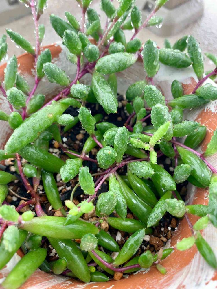 雨にさらすと全体的にぷりぷりする印象なので、水はけの良い鉢で、お水多めで育てています。参考になるかどうか😅