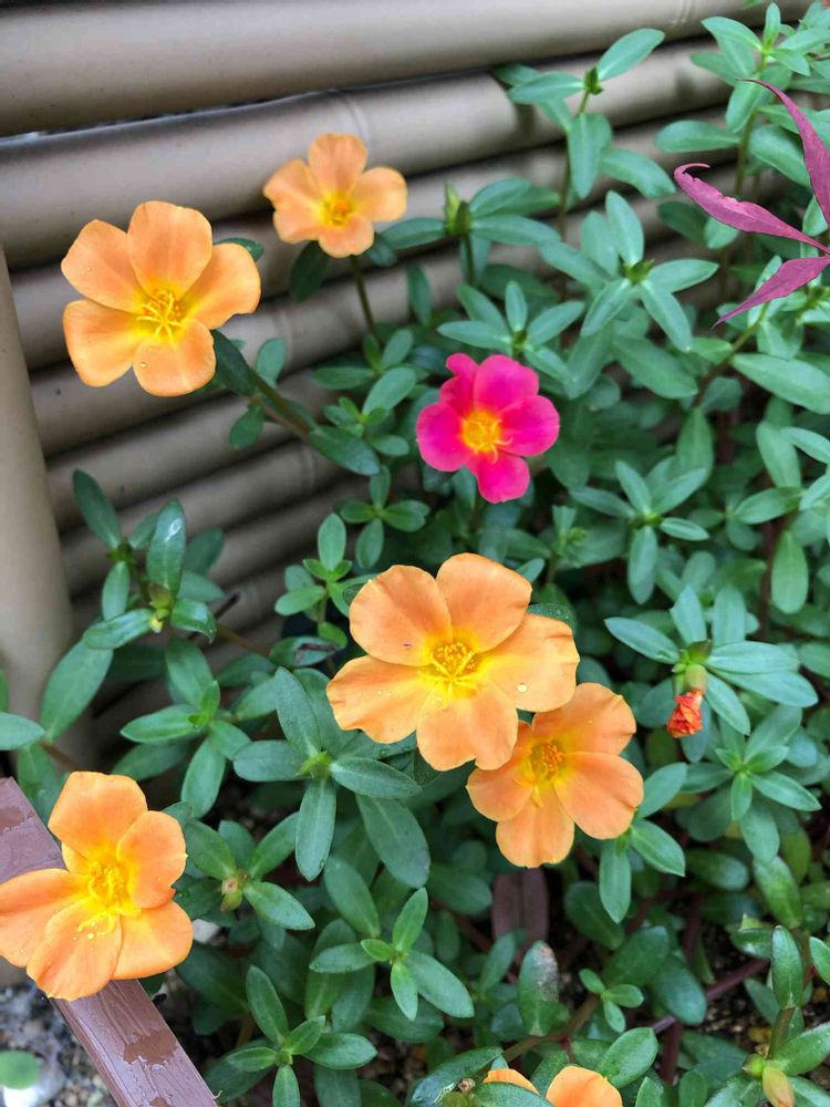 可愛いポーチュラカさん、オレンジの株にピンクが