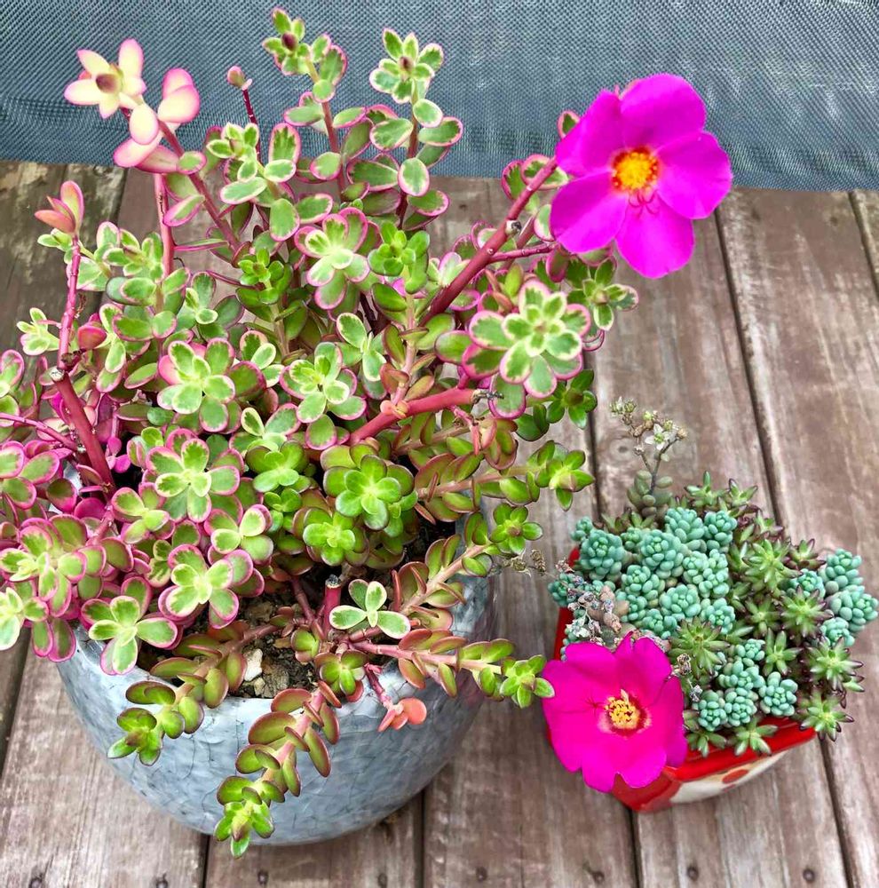 ポーチュラカマジカルキューティーのお花と、ポーチュラカピンキーのお花が咲いていました🌸