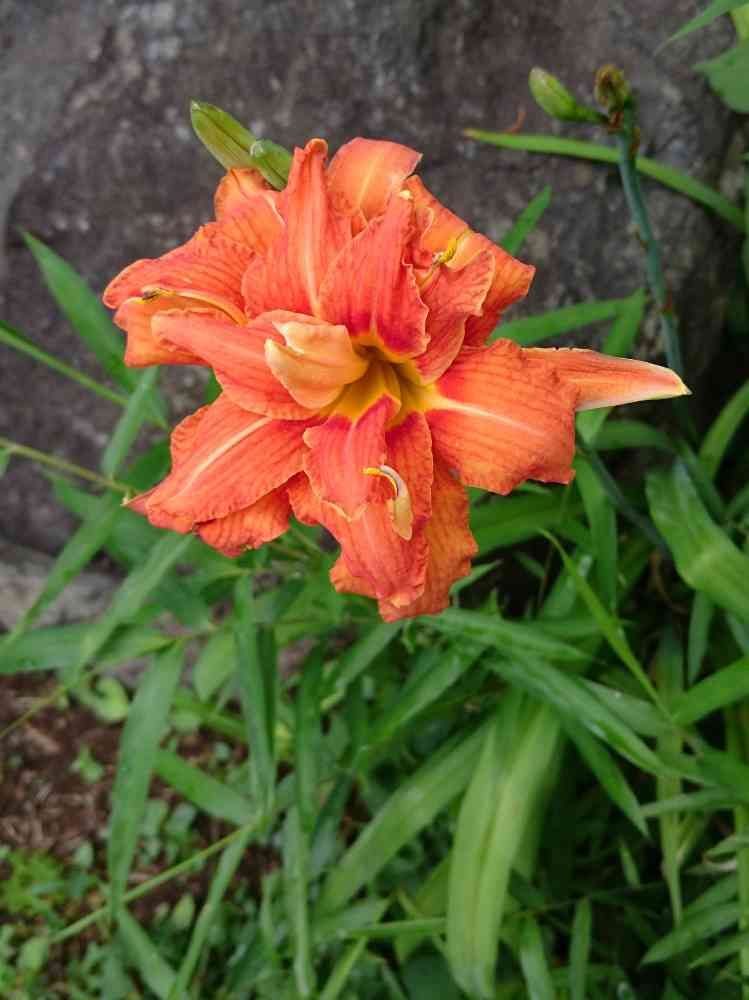 毎年、庭石の奥に細長い葉が繁り、その度に草刈り機で一掃していましたが、今年は放置してたらこんなにキレイな花が咲きました