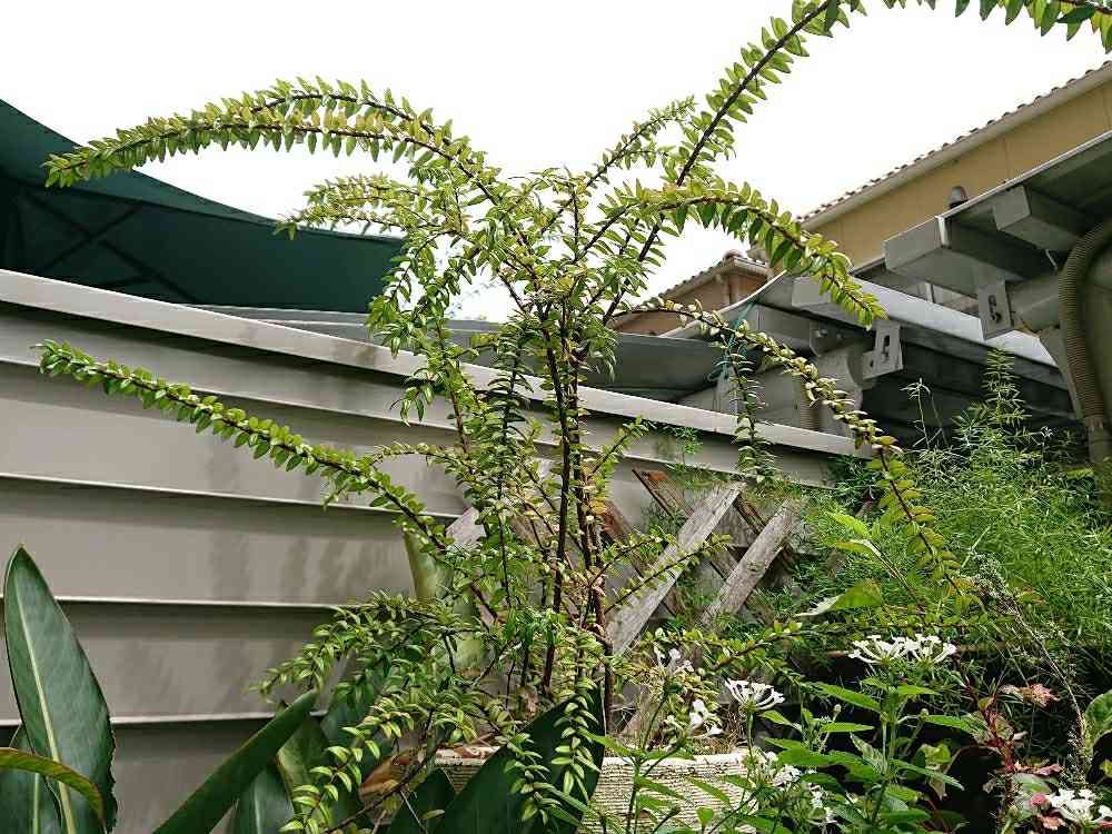 園芸店で見かけるようになってから数年は経つのに、人気がないのかGSにもほとんど投稿がありません。丈夫ですぐに大きくなるし、樹形も独特(暴れる君ですけど)なのでオススメなんですけどね。ツツジ科の低木でどうやら花も咲くらしいですが、我が家ではまだ見たことがないです😢