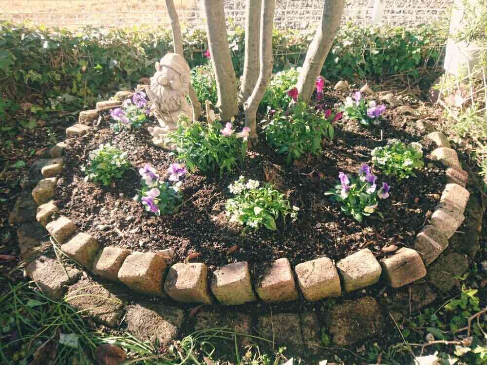周りを外側と内側にぐるりと斜めレンガを挟むように並べてるんです。