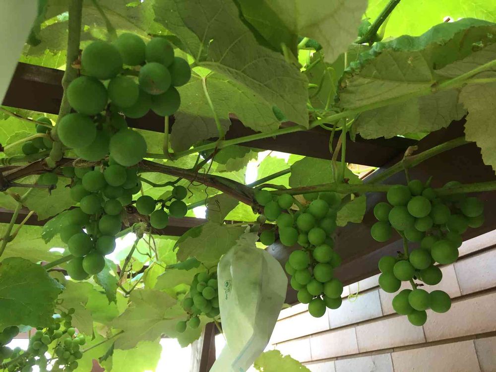 ブドウ棚は三年前に 自分で作りました。冬を2シーズン超えましたが、倒壊せずにツルを這わせています😆