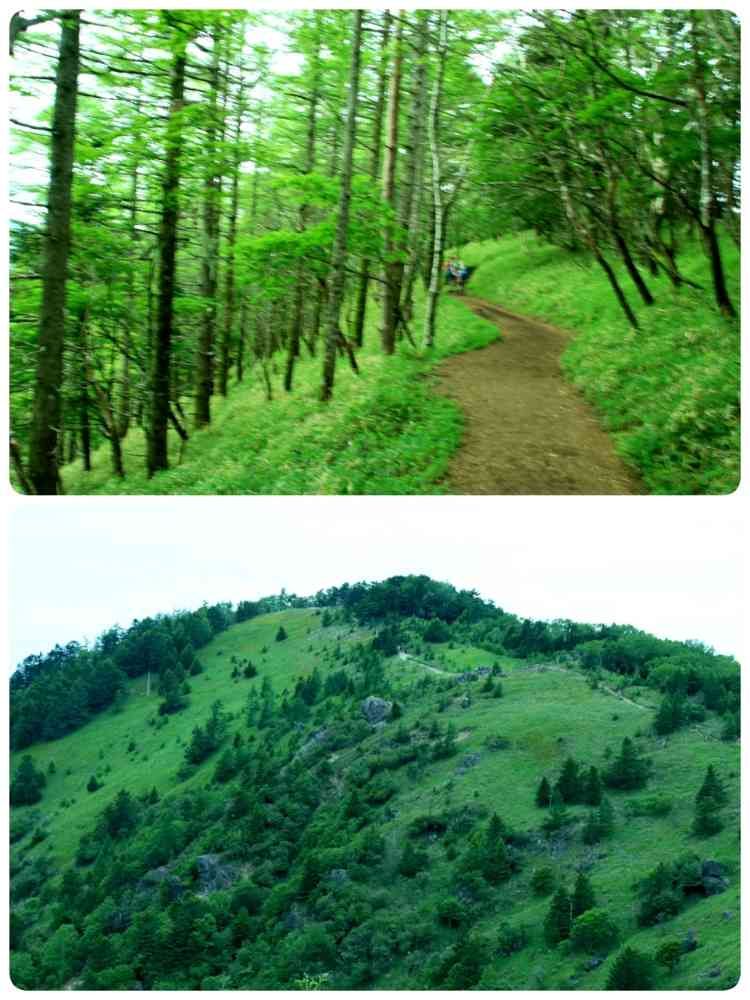上:唐松尾根下山道、秋の唐松の黄葉が楽しみです。