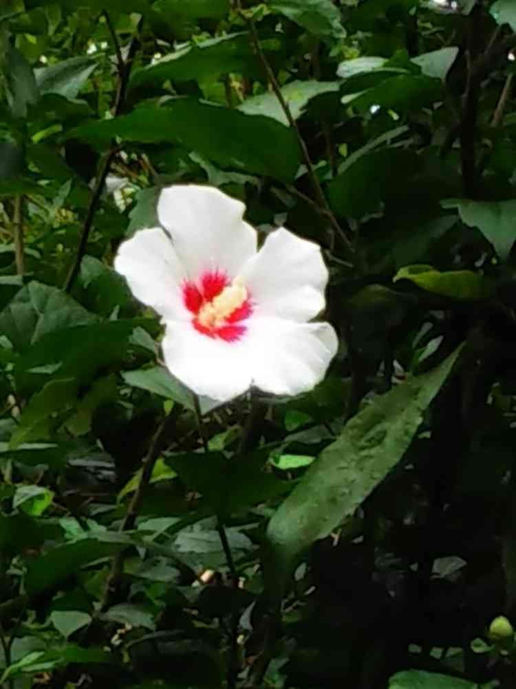 大雨にも負けず、スッと顔をあげて咲いてるうちの宗旦木槿💟