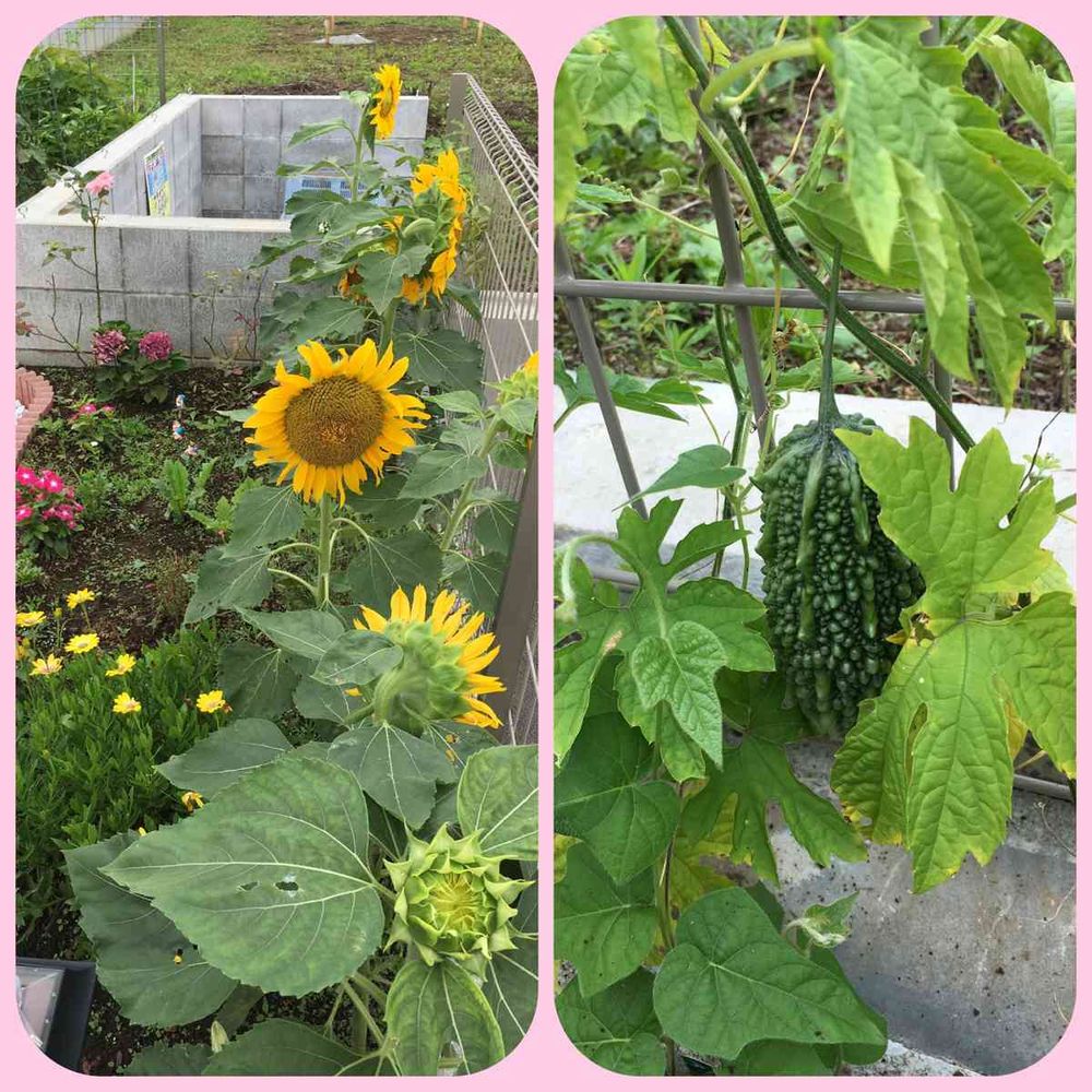 娘の所のミニヒマワリと可愛いゴーヤ😍💕