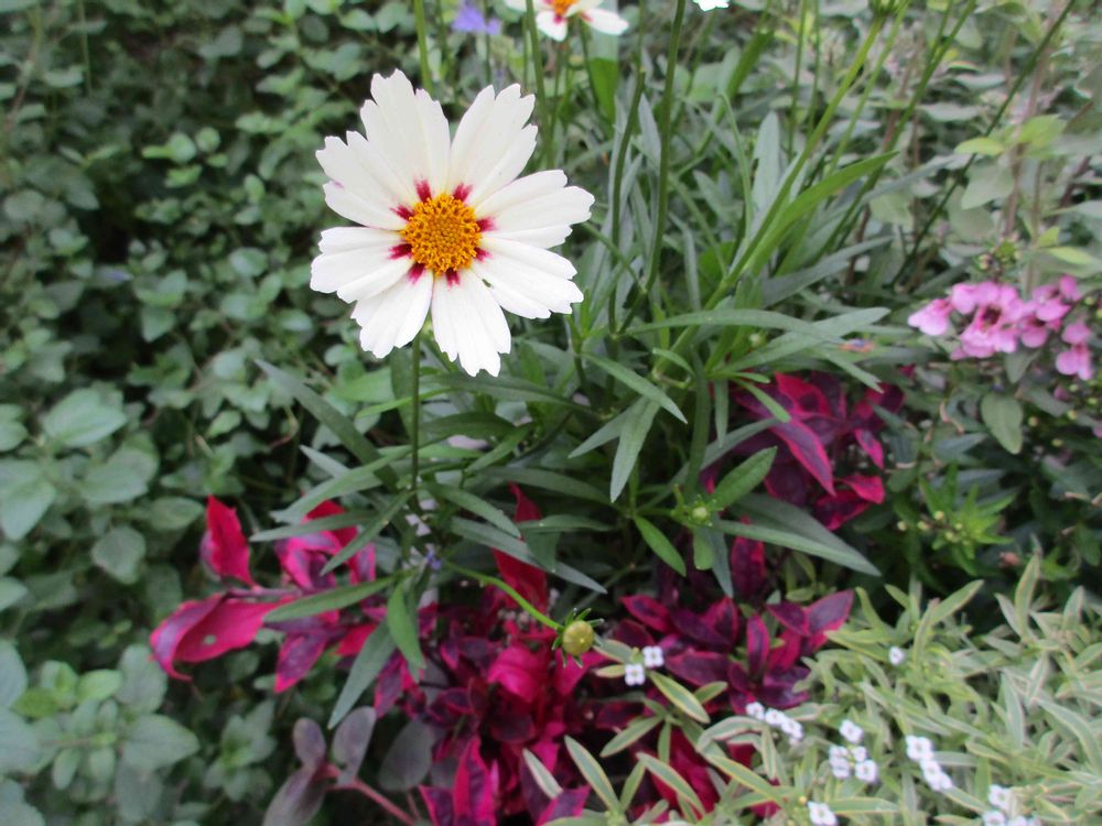 コレオプシスは花弁の縁に紫が入るはずですがまだ出ていません。かわいい形♡コタキナバルは今までで一番の鮮やかなピンク。スーパーアリッサム、斑入りは初めて。
