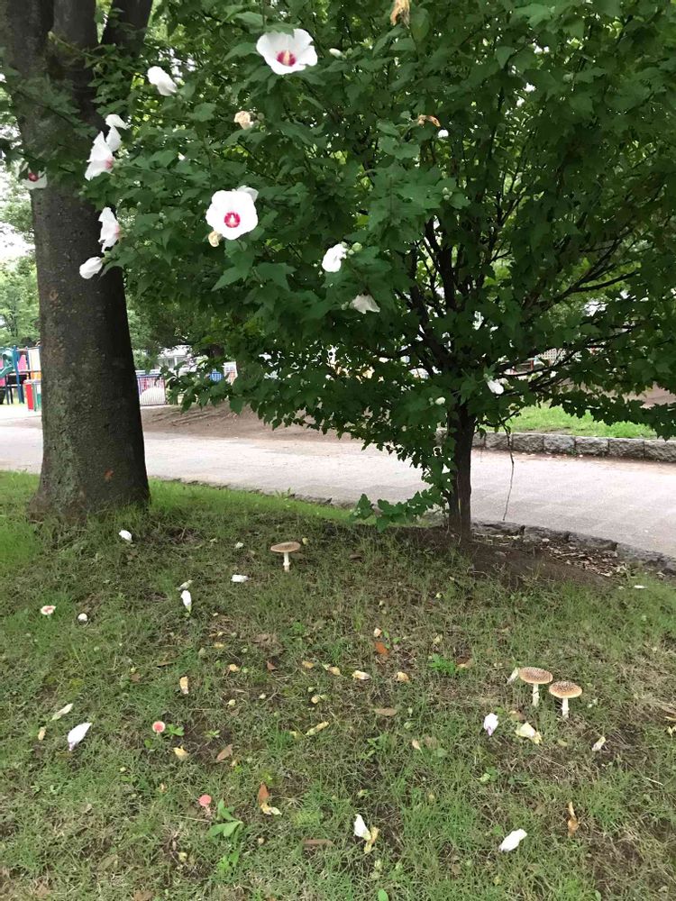 このキノコ確かこの後まわりが反り返って来ると思います。ムクゲはキレイです