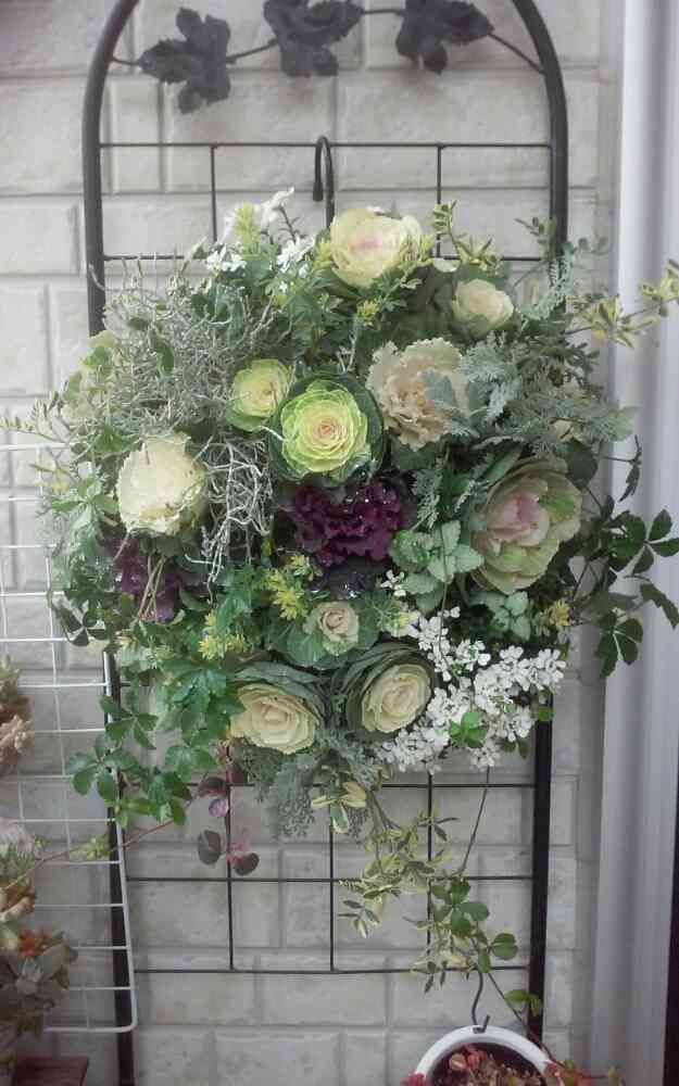 玄関,ハンギングバスケット,葉牡丹の寄せ植えの投稿画像