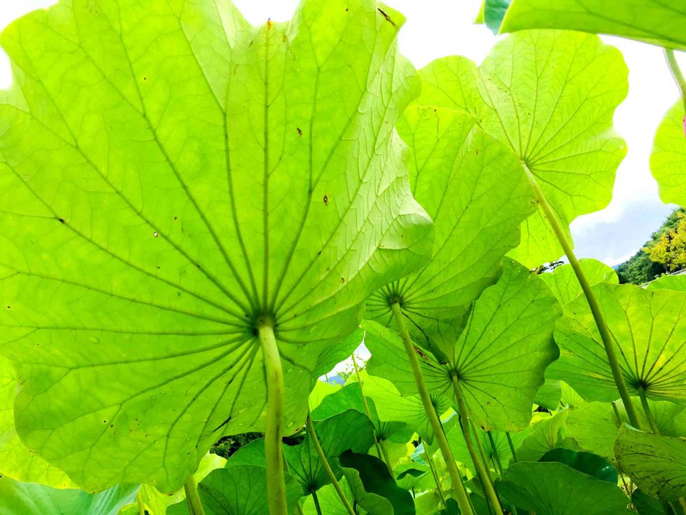 さん🍀蓮の葉に光が透けてきれいですね✨象鼻杯みたいにして🍹ジュース飲みたいですね😋
