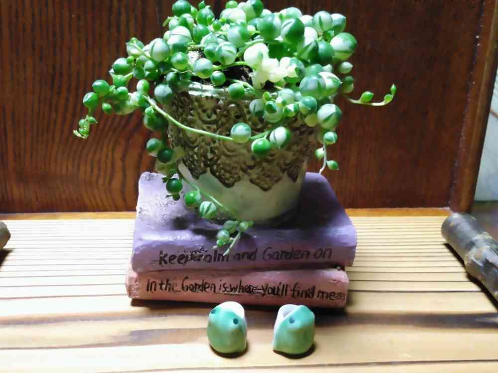 窓辺,斑入りグリーンネックレス,多肉植物寄せ植えの投稿画像
