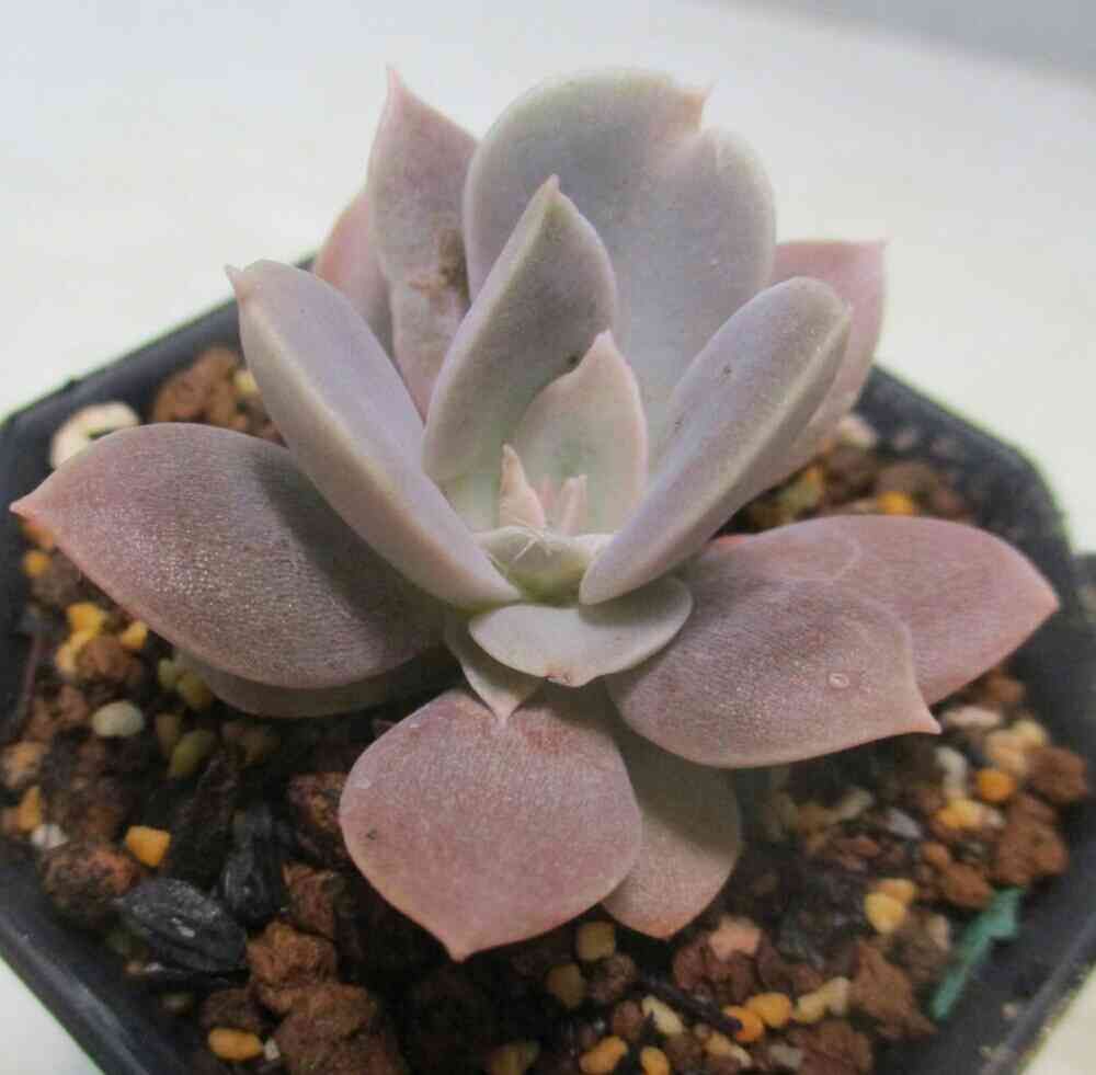 子株で,生育期のせいか,淡いパープルの新葉を葺いて,若々しい.