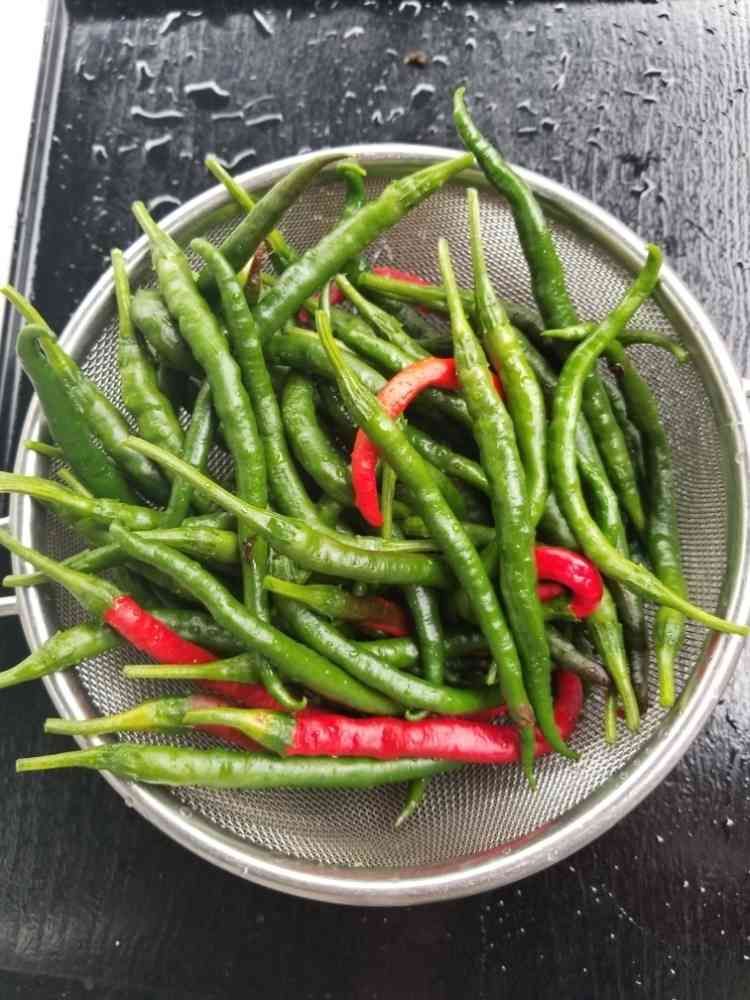 ひもとうがらしって緑色で収穫⁉️クックパッドでは辛くないから醤油炒めで⁉️