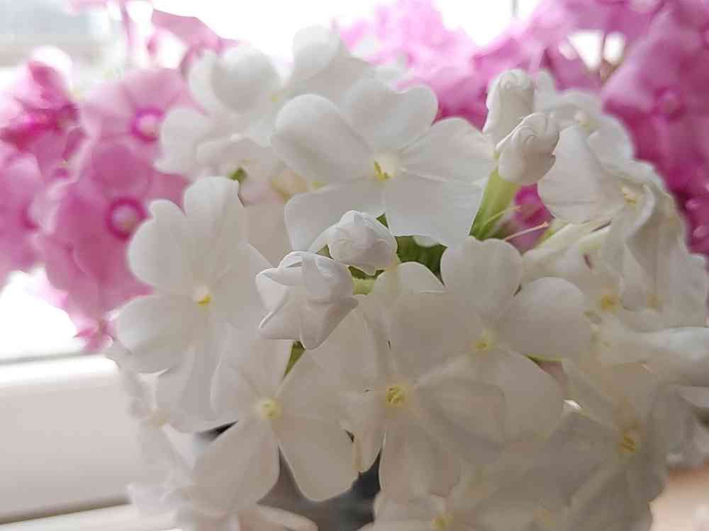白いフロックスのつぼみが可愛らしかったので😊ズームで観てみました。