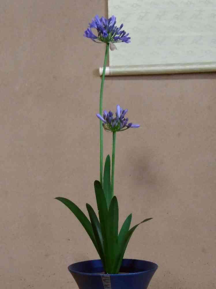 憂鬱な梅雨空でもアガパンサスを生けると気持ちが凛とします。