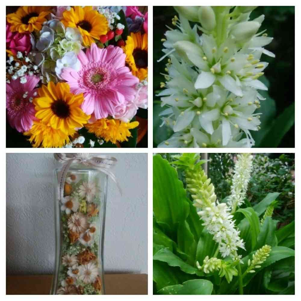 左は、夫の転勤で、転居するため、退職する娘が、記念に頂いた花束と、ドライフラワーの瓶詰め?
