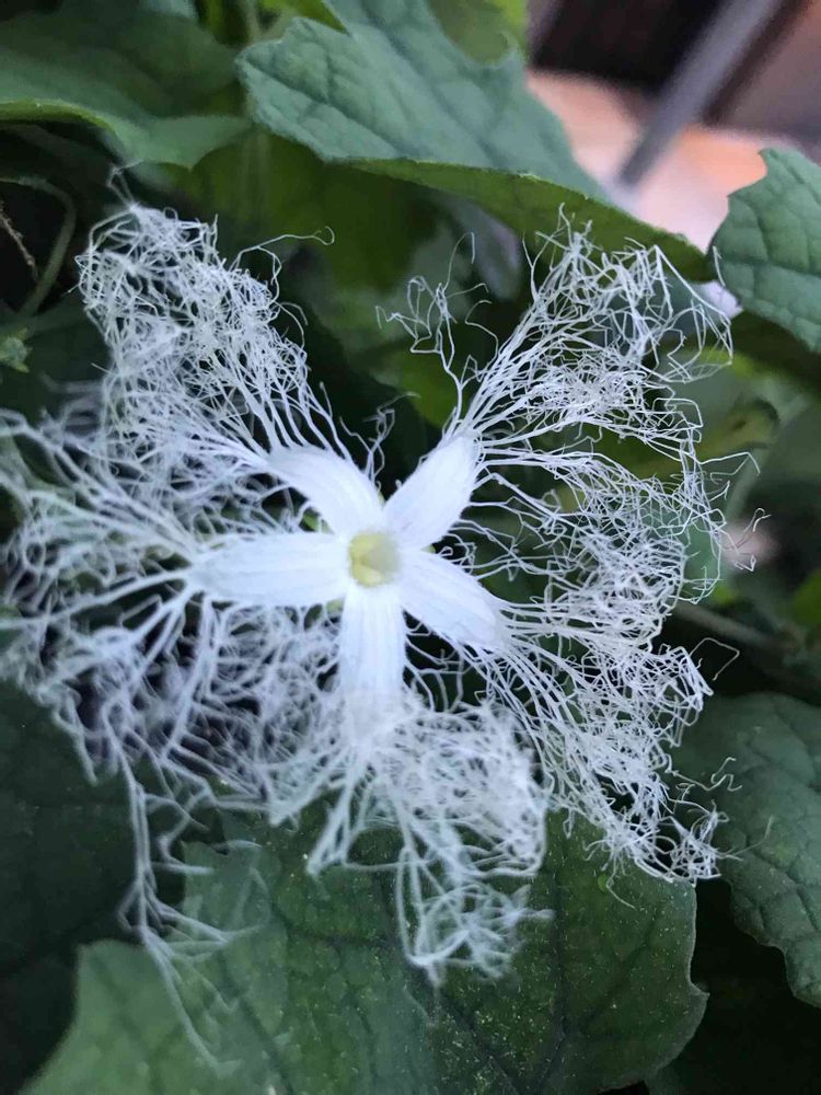 春になると毎年生えたくるカラスウリですが、花を見たのは初めてです(^◇^;)