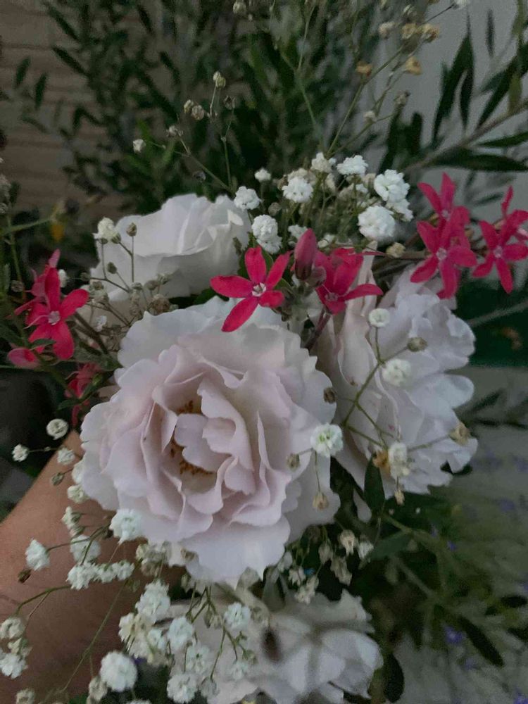 お家の庭のお花がちょうど素敵に揃ってカットが出来るなんて幸せですね😋