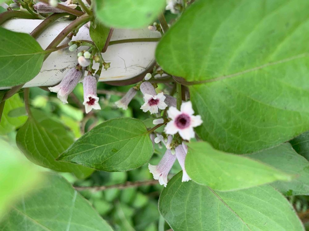 通勤途上の、橋のたもとの鉄の柵に絡みついてる、つた状の草です。
