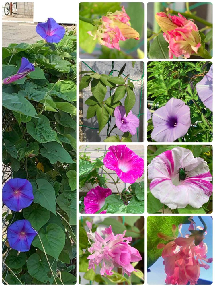 真ん中列、上から二段目は、昨年11月3日のもみじ葉アサガオ