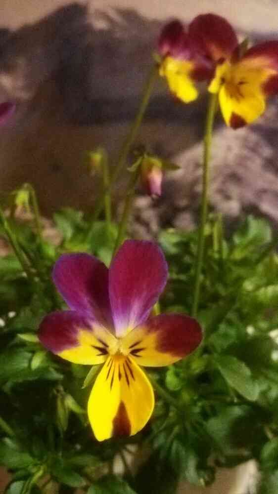 いつもは、玄関に置いて有るビオラを、部屋に持って来ました♪山をバックに…(^_^)v今日の2枚目♪