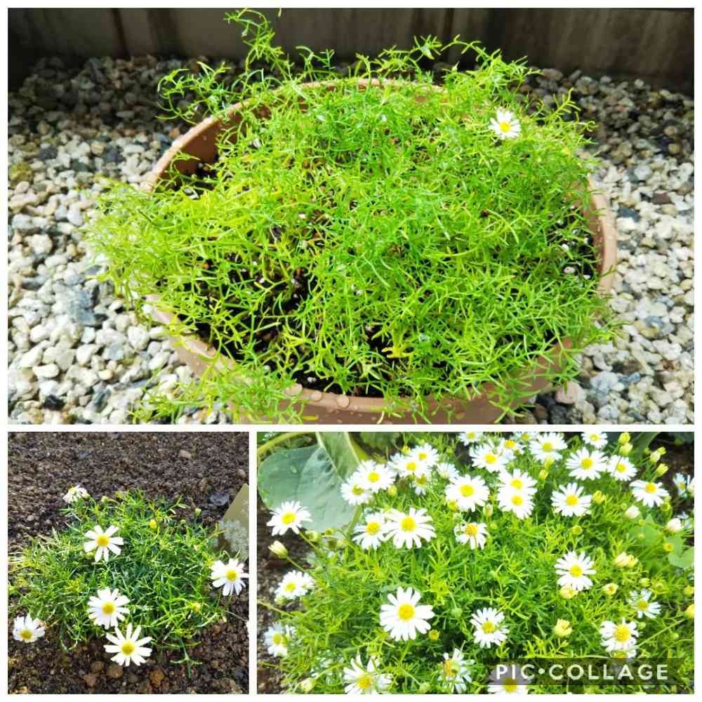 ブラキカム・ホワイティを花壇から鉢あげしました。