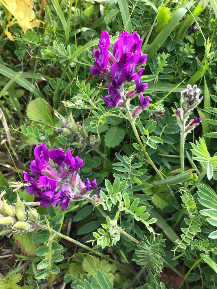 礼文島固有種のレブンソウ。冷たい風に当たるために、全体を白い毛でおおわれています。