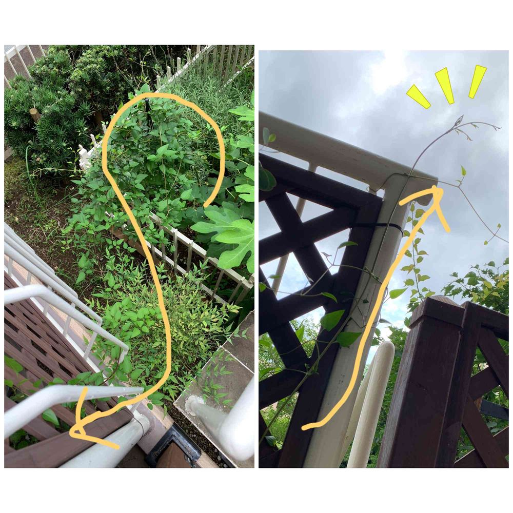 フェンスじゃなくてラティスの方に絡んで欲しいので横に這わせ直しました🎵