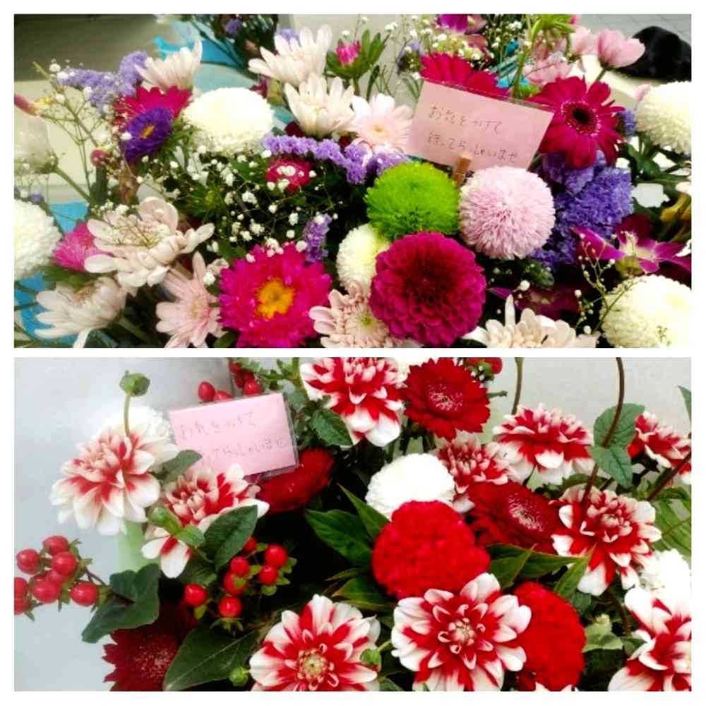 ダリア、センニチコウ、かすみ草、スターチス、ガーベラ、ヒペリカム、ルドベキア かな?
