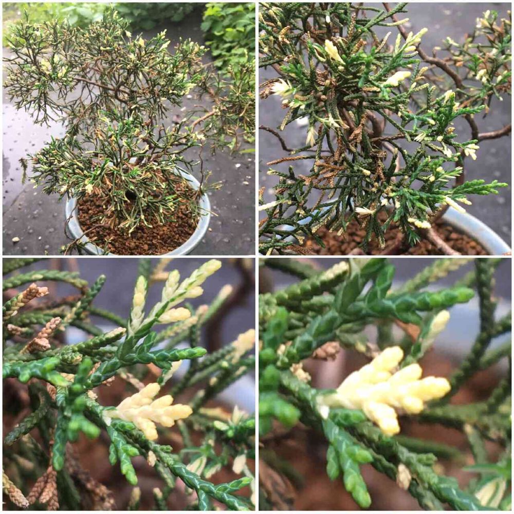 ニッコウヒバも葉が黄色になるとおもいます。桧もけっこう種類があって??です。盆栽の育て方はすいませんがちょっと🙏です。知り合いは違う木ですが、土の栄養不足だということで剪定して土、入れ替えてました。