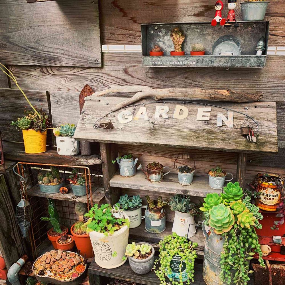 白い板壁に付けてたGARDENの飾り、色が剥げてて塗り直すか処分するか悩んだけど多肉棚の屋根に付けたらしっくりいったので処分せずに置いといて良かったです😊