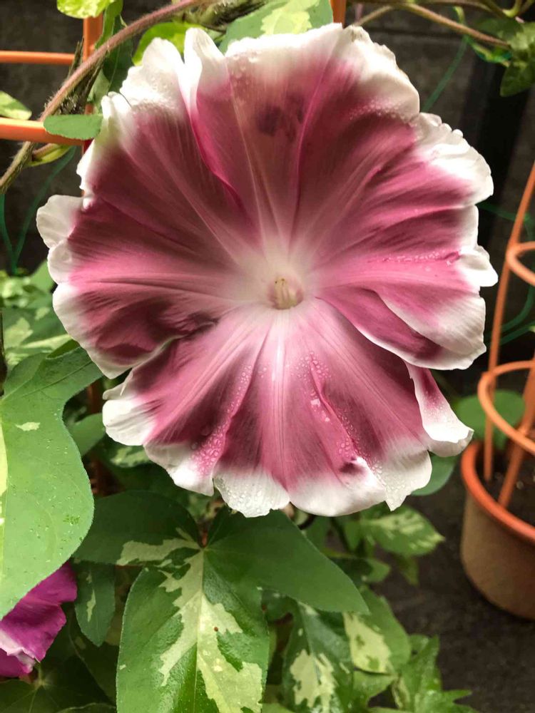 斑入りの葉っぱの朝顔💠少しお高めだったんですね😃何か得した気分です〜🉐
