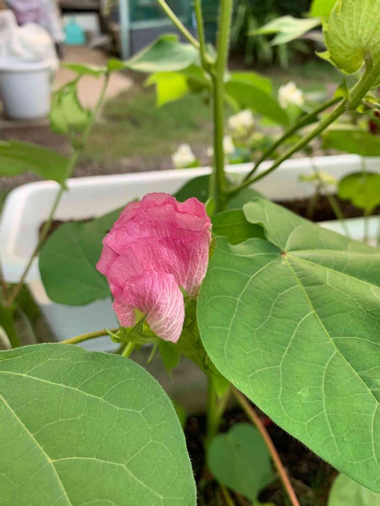 綿の花初めて見ました、この花が綿に成るんですか❓😊👍