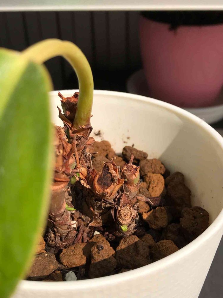 瀕死のフィロデンドロン^_^やっと数年振りに新しい葉っぱらしき緑が出てきました(^◇^;)