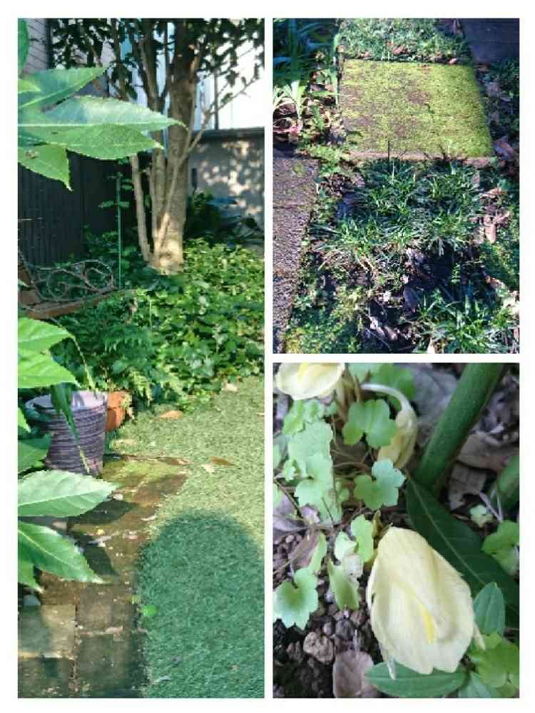 南と西側が開けてない小さな庭も、夏❗になると朝5時、東側から、☀️が庭の奥まで差し込みます🤗。(まるで、夏至の太陽のピラミッド😅)