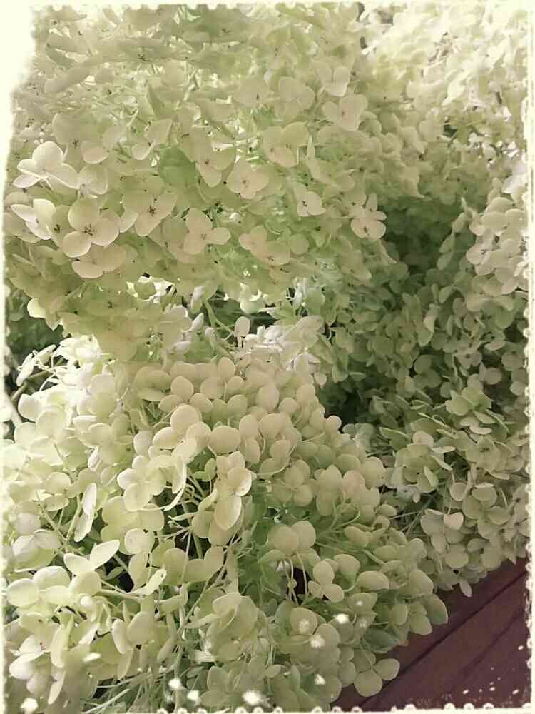アナベル 緑に色づき 所々茶色くなってきたので 収穫😆